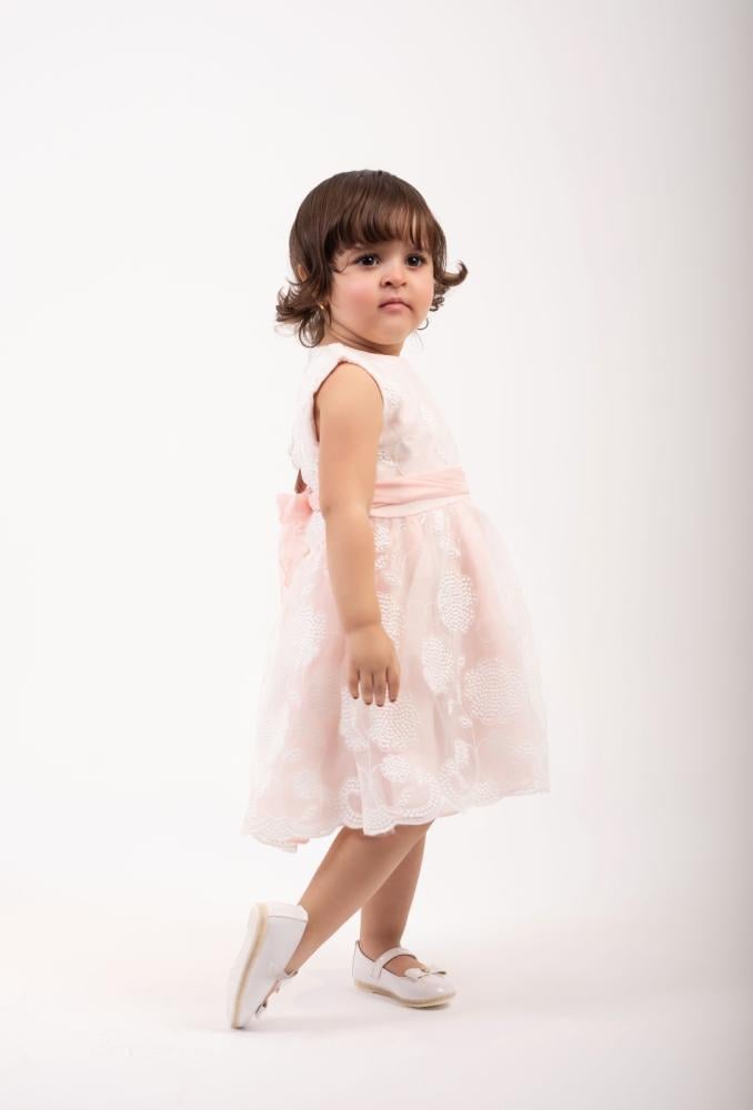 امنحي صغيرتك إطلالة ملكية ناعمة مع فستان إليورا المصمّم بتفاصيل فاخرة تجمع بين الرقي وبراءة الطفولة. يأتي الفستان بلون وردي هادئ ينسدل عليه تطريز دانتيل أبيض برسومات زهرية أنيقة تمنح اللوك جاذبية لا تُقاوم وتناسب كل المناسبات الراقية.