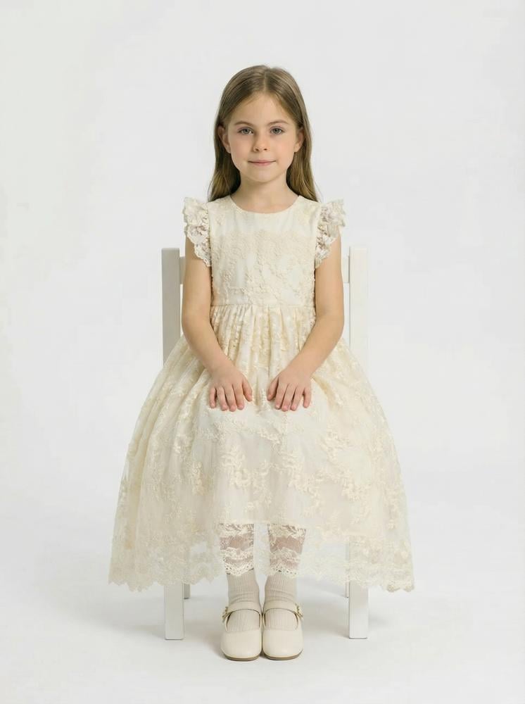 فستان “زهرة الفانيليا” هو الخيار الأمثل لإطلالة ملكية ناعمة لطفلتك. يتميز بتصميم راقٍ من الدانتيل الفاخر بطبقة شفافة تضفي لمسة من الرقة والأنوثة. اللون الكريمي الدافئ يجعل الفستان مناسباً لجميع المناسبات مثل الأعياد وحفلات الزفاف والتصوير الفوتوغرافي.