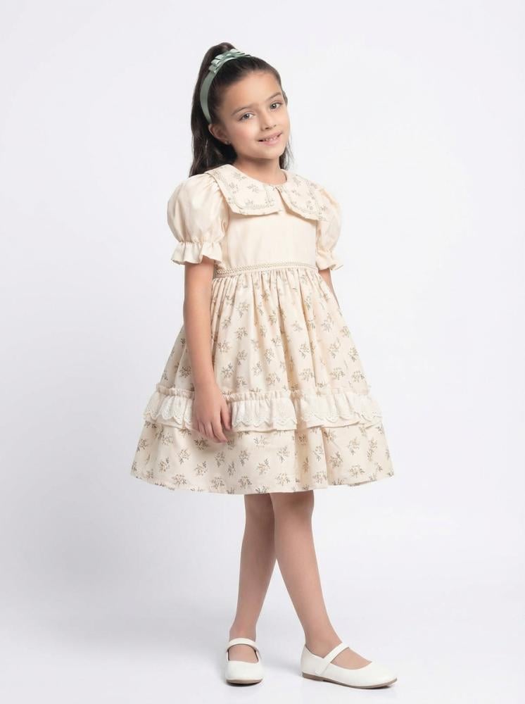 فستان أنيق يعكس معنى النعومة والأناقة الهادئة، بتصميم كلاسيكي راقٍ يبرز جمال الطفولة بأسلوب بسيط ومميز.