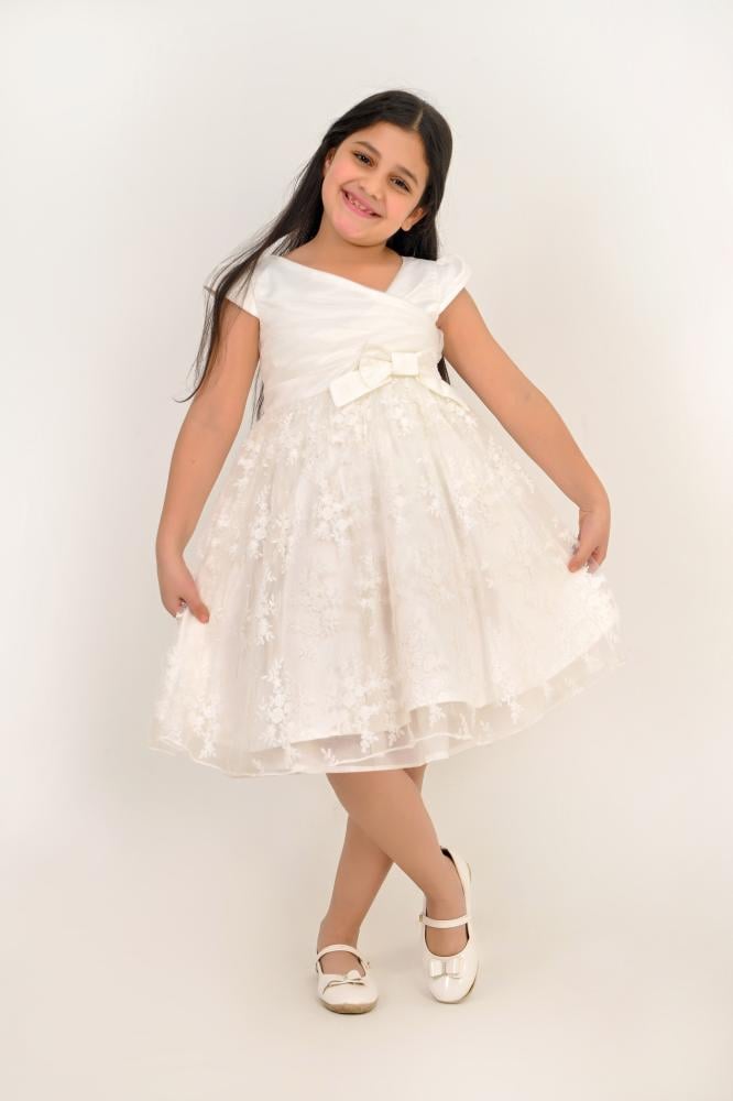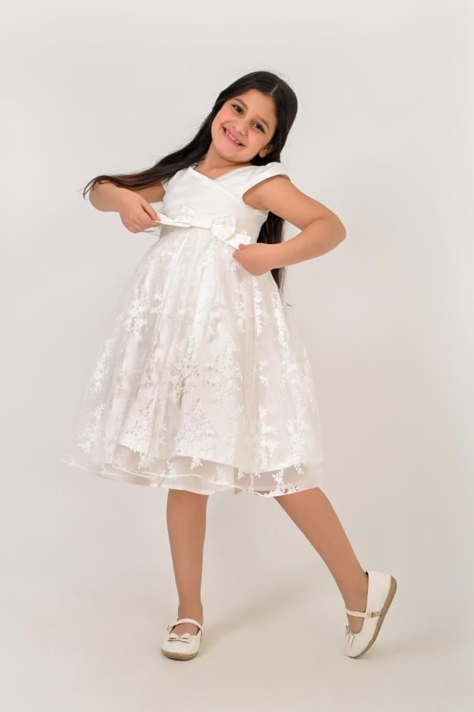 يمنح فستان ملكي ساحر طفلتك مظهرًا استثنائيًا بفضل تصميمه الأبيض الأنيق ولمساته الناعمة. يجمع هذا الفستان بين الرقي والبساطة بأسلوب يلفت الأنظار. خامته الخفيفة تضمن الراحة طوال فترة ارتدائه. خيار مثالي للمناسبات الرسمية والحفلات الراقية.
