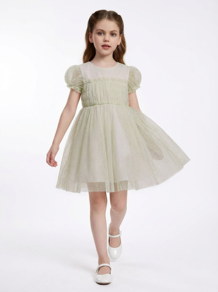 فستان أطفال بتصميم ناعم وأنيق، يتميز بتفاصيل دقيقة تعطي الإطلالة جمالًا هادئًا بدون مبالغة. يأتي فستان لُطف بقماش تول خفيف مزين بترتر ذهبي ناعم يمنح لمسة بسيطة من اللمعان، تظهر بشكل لطيف مع الحركة وتحت الإضاءة.