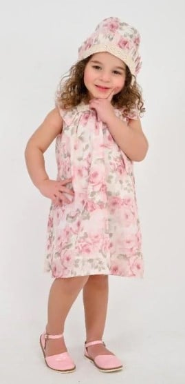 يُرفق الفستان بقبعة متناسقة بنفس نقشة الزهور مع شريط جانبي يمنح مظهراً رقيقاً يكمل الإطلالة الكلاسيكية. يناسب هذا الطقم الاستخدام اليومي الراقي وكذلك المناسبات الخاصة مثل حفلات الميلاد، الخروج العائلي، أو جلسات التصوير، ليمنح صغيرتك مظهرًا مميزًا يلفت الأنظار بسهولة.