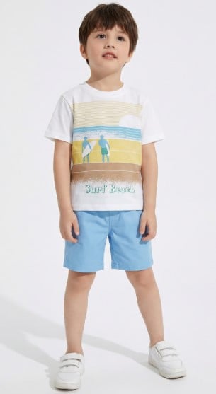 طقم أبطال الشاطئ صُمم خصيصًا للأولاد ليمنحهم إطلالة صيفية شبابية تجمع بين الراحة والمرح. يضم الطقم تيشيرت أبيض بطبعة شاطئية وألوان هادئة وشورت أزرق فاتح عملي، مع خامة قطنية ناعمة تسمح بحرية الحركة وتناسب اللعب اليومي.