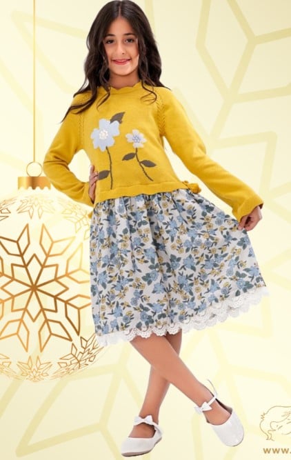 فساتين بنات كبار للعيد شتوي أصفر أنيق