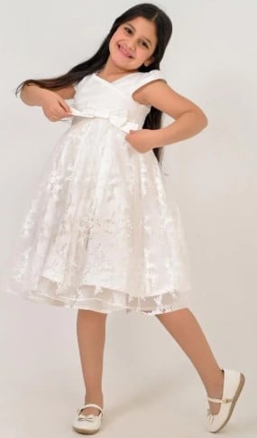 يُعد هذا الفستان خيارًا مثاليًا لحفلات الزفاف والمناسبات الرسمية، حيث يجمع بين الرقي والراحة بفضل خاماته الخفيفة والناعمة. يمكن تنسيقه بسهولة مع حذاء أبيض بسيط ليمنح الطفلة إطلالة أنيقة ومتكاملة.