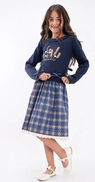يأتي فستان شتوي كحلي أنيق بتصميم كلاسيكي راقٍ يجمع بين الفخامة والدفء في آنٍ واحد. مصنوع من خامات عالية الجودة تمنح طفلتك إحساساً بالراحة خلال الأيام الباردة، مع نقشة الكاروهات الجذابة التي تضفي لمسة من الأناقة الشتوية. يتميز الفستان بأكمام طويلة وتفاصيل دقيقة عند الخصر والياقة تمنحه مظهراً متكاملاً يناسب الإطلالات الراقية.