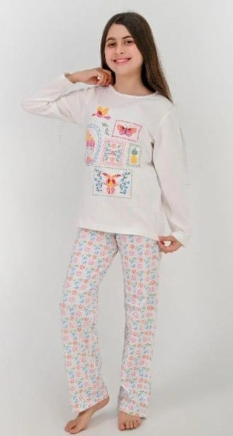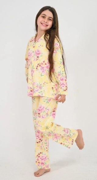 تأتي بجامة زهور البنات بتصميم مفعم بالأنوثة والراحة، حيث تجمع بين الأناقة والبساطة في آنٍ واحد. تتكون من تيشيرت أبيض بأكمام طويلة مزين برسومات زهرية ناعمة وفراشات رقيقة تضيف لمسة من البهجة، مع بنطال مزخرف بنقوش زهرية صغيرة بألوان مبهجة. مصنوعة من قماش قطني ناعم 100% لضمان راحة تامة لطفلتك أثناء النوم أو وقت الاسترخاء في المنزل.
