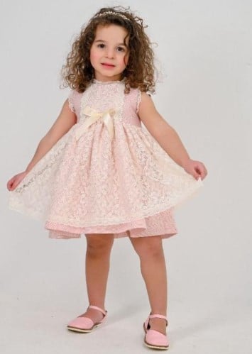 يتميز فستان الأميرة الوردية بتصميم فاخر يجمع بين الأناقة والنعومة ليمنح طفلتك إطلالة ملكية ساحرة. مصنوع من طبقات دانتيل ناعمة تضيف لمسة راقية وفخمة، مع قصة واسعة تمنح الراحة والانسيابية أثناء الحركة. يأتي الفستان بلون وردي فاتح مزين بتفاصيل كريمية تضفي توازناً جميلاً بين البساطة والرقي، مما يجعله خيارًا مثاليًا للمناسبات الخاصة.