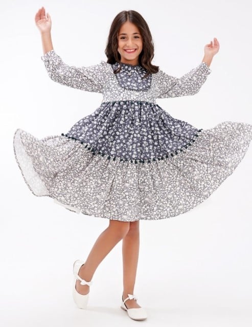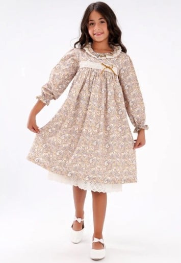 يُعد فستان زهرة الكاميليا من التصاميم الأنيقة التي تجمع بين البساطة والفخامة، حيث يأتي بنقوش زهرية مفعمة بالحياة مع تفاصيل الكشكشة والدانتيل التي تضيف لمسة راقية على الإطلالة. كما أن قصته الانسيابية والخفيفة تمنح الطفلة حرية الحركة والراحة طوال الوقت، مما يجعله خيارًا مثاليًا ضمن فساتين عيد ٢٠٢٦ التي تناسب العيد والمناسبات الخاصة.
