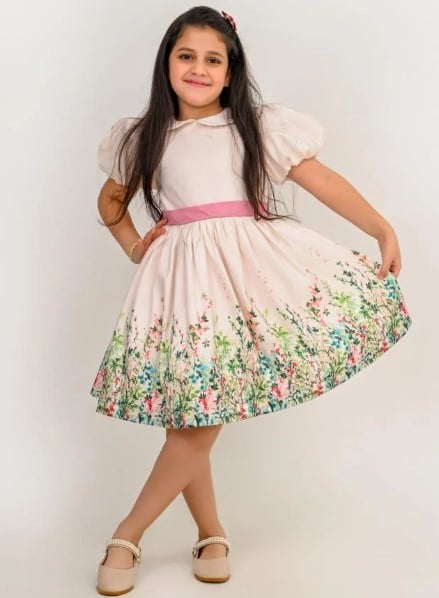 يُعد هذا التصميم من أجمل فساتين بنات جديده المناسبة لموسم الأعياد والمناسبات، حيث يأتي فستان ربيعي مشرق ضمن أحدث فساتين اطفال للعيد 2026 التي تجمع بين الأناقة والبساطة في آنٍ واحد. يتميز الفستان بتصميم راقٍ وطابع زهري حيوي، فهو مصنوع من قماش أبيض ناعم مزين بزخارف زهرية مستوحاة من الطبيعة على أسفل الفستان، بينما يضيف الحزام الوردي لمسة أنيقة تُبرز جمال الخصر وتمنح طفلتك إطلالة مشرقة وجذابة ضمن أجمل فساتين بناتي ٢٠٢٦.
