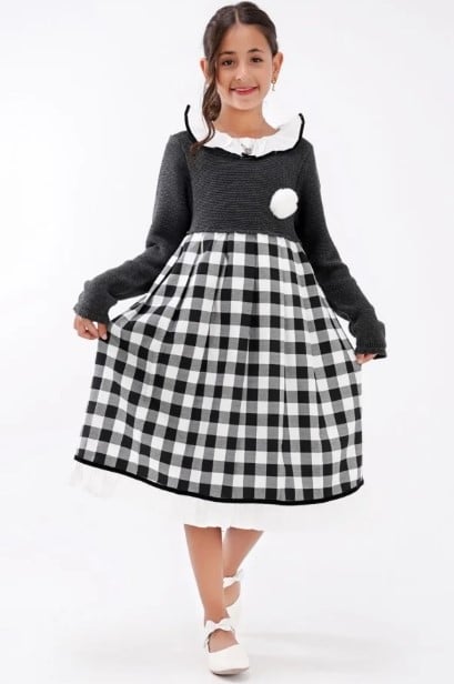فستان بناتي شتوي رائع يتميز بصدرية من الصوف الناعم الذي يوفر الدفء والراحة طوال اليوم، مع تنورة مزينة بطبعة كاروهات كلاسيكية تضفي لمسة أناقة عصرية. تصميمه يشمل ياقة مكشكشة وأكمام طويلة، مما يجعله خيارًا مثاليًا ضمن فساتين بنات كبار للعيد و فساتين بنات 12 سنة للعيد، لتجمع بين الراحة والمظهر الأنيق في المناسبات الخاصة و الإطلالات اليومية.