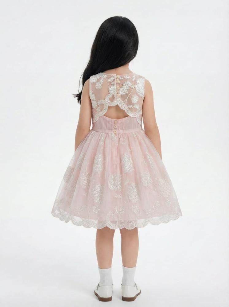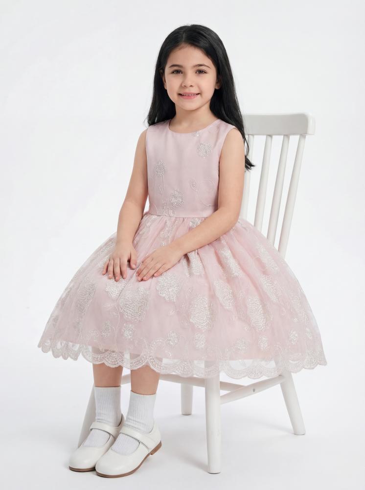 يمكن تنسيقه مع تاج صغير أو حقيبة أنيقة لإطلالة متكاملة تخطف الأنظار في التجمعات العائلية أو حفلات المدرسة. التصميم يجمع بين الفخامة والبساطة في آنٍ واحد، ليكون خيارًا مثاليًا في المناسبات الخاصة، هذا الفستان يندرج ضمن أجمل موديلات فساتين عيد للبنات الصغار، كما يُعتبر من أحدث صيحات فساتين أطفال دانتيل فخمة.