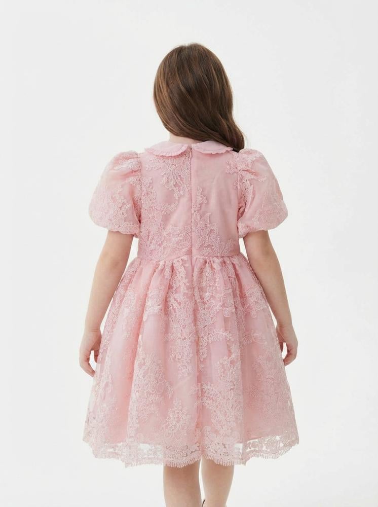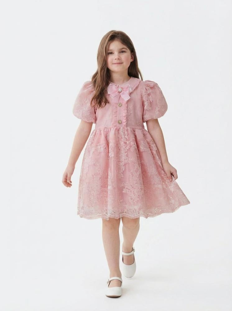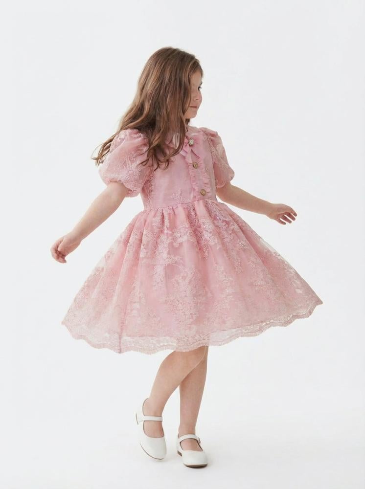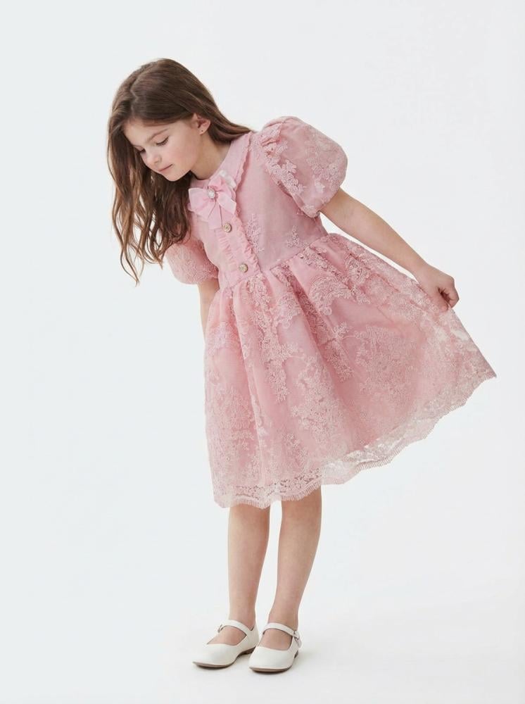 فستان لوسينا الوردي من أجمل فساتين العيد للبنات ويعتبر أيضًا خيارًا مميزًا ضمن أزياء العيد الراقية للأطفال.