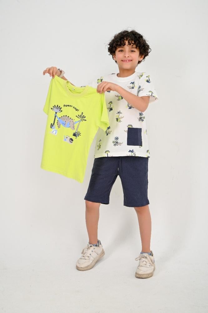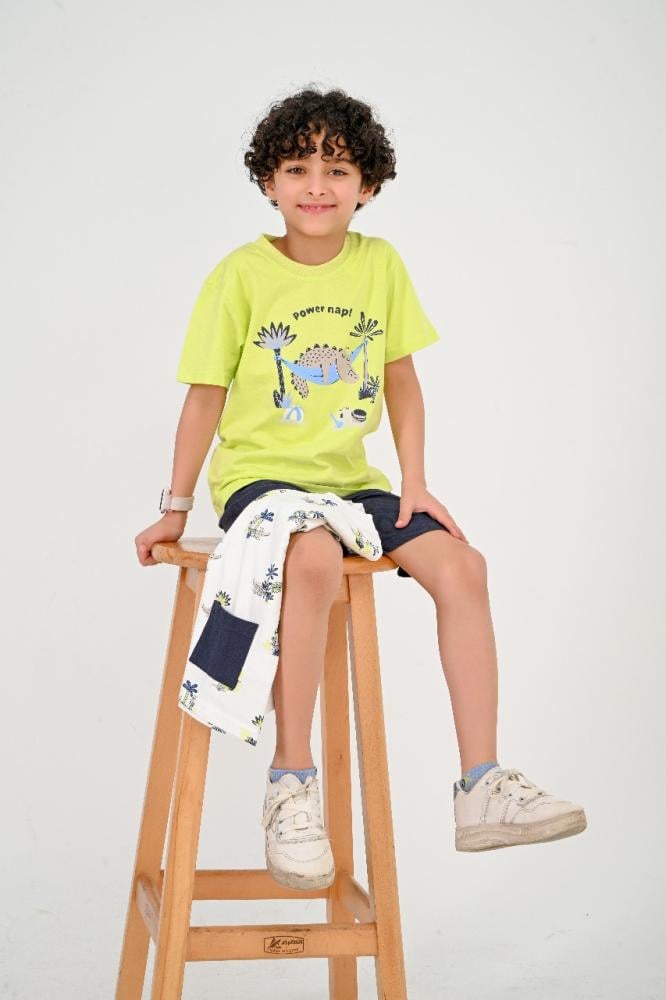 طقم صيفي مريح بألوان نابضة بالحياة وتصاميم مستوحاة من الطبيعة، مثالي للأطفال المحبين للاستكشاف والمغامرات. يجمع بين الراحة والأناقة، مما يجعله خيارًا رائعًا للأيام الحارة والخروجات الكاجوال.
