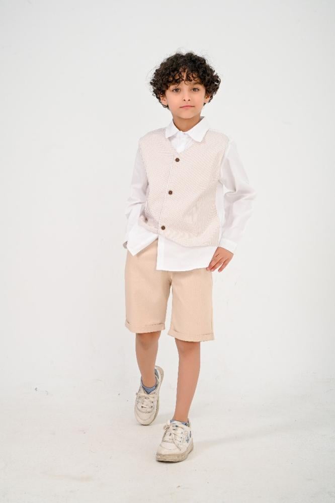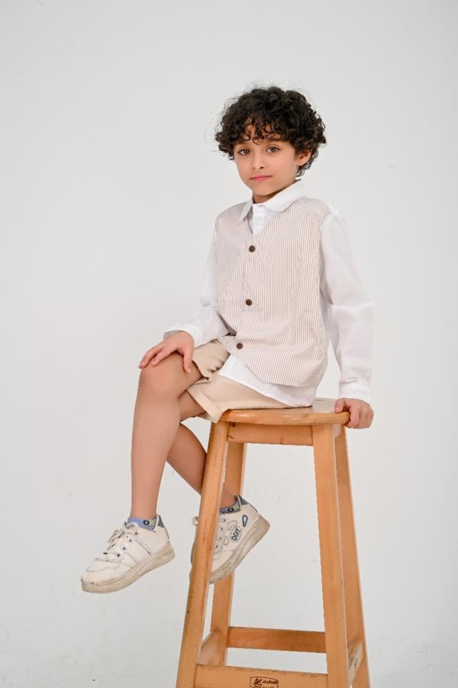 طقم أنيق مستوحى من الأسلوب الكلاسيكي البسيط، يجمع بين الأناقة والراحة ليمنح الطفل إطلالة راقية بلمسة عصرية. تصميم مثالي للمناسبات الخاصة أو الإطلالات اليومية الفاخرة.