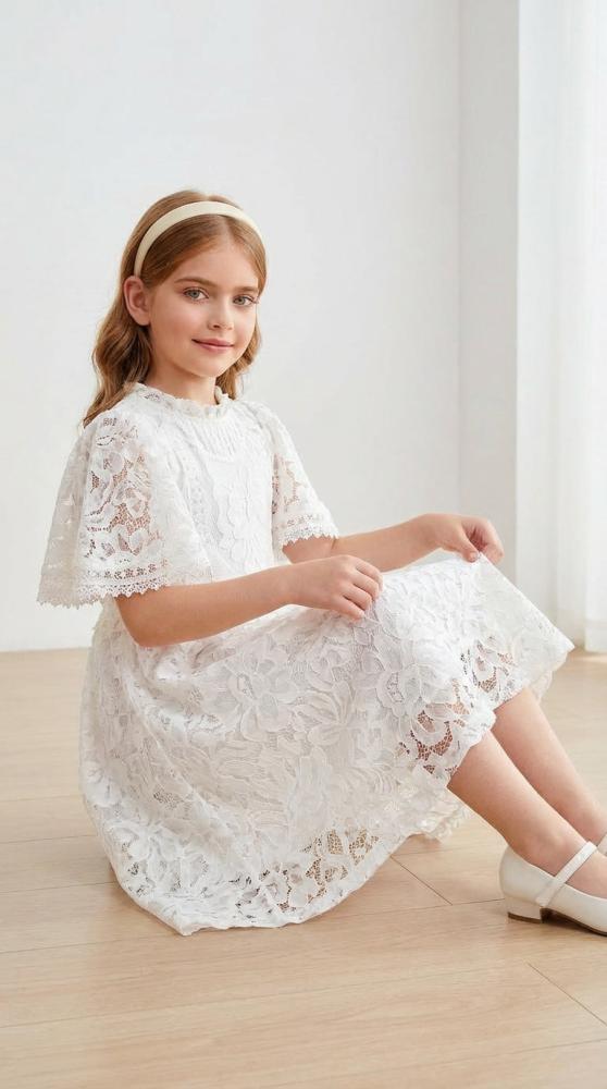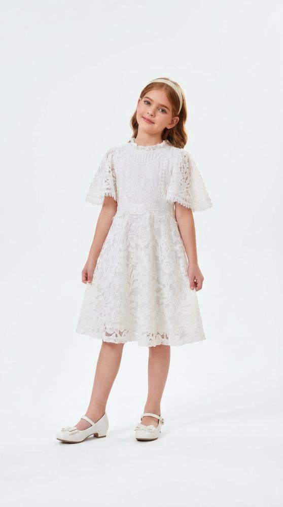 فستان فاليريا الملكي يعكس نقاء الأبيض وسحر الدانتيل الكلاسيكي في تصميم راقٍ يليق بأرقى المناسبات. كل تفصيلة فيه تنطق بالذوق الرفيع، ليمنح طفلتك حضورًا ملكيًا ناعمًا يخطف الأنظار دون تكلّف.