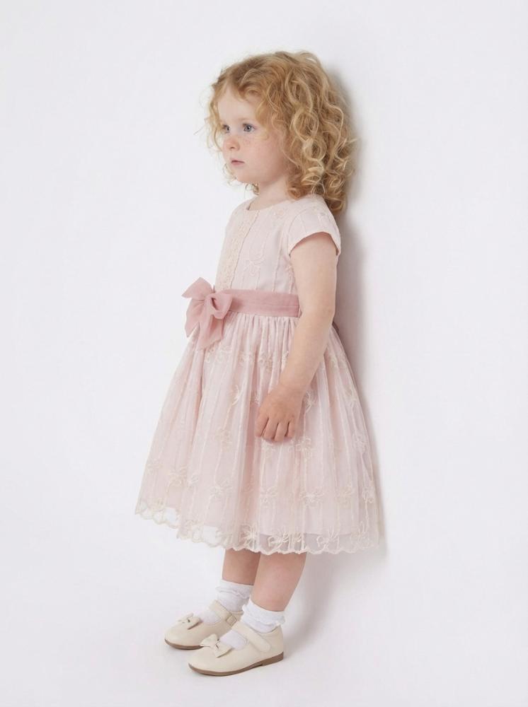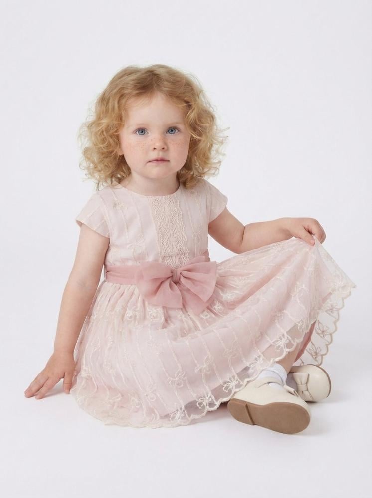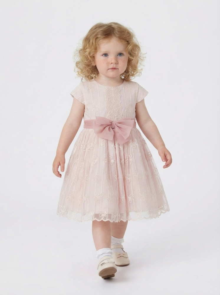 فستان طفولي ناعم بتصميم هادئ يعكس إحساس الرِقّة واللُطف في أدق تفاصيله. صُنع من قماش تول خفيف وطبقات دانتيل ناعمة تنسدل بانسيابية جميلة، لتمنح الفستان حركة رقيقة ومظهرًا أنيقًا. يتميز بقصة مريحة بعناية تناسب بشرة الطفل وتمنح حرية كاملة للحركة دون أي إزعاج.