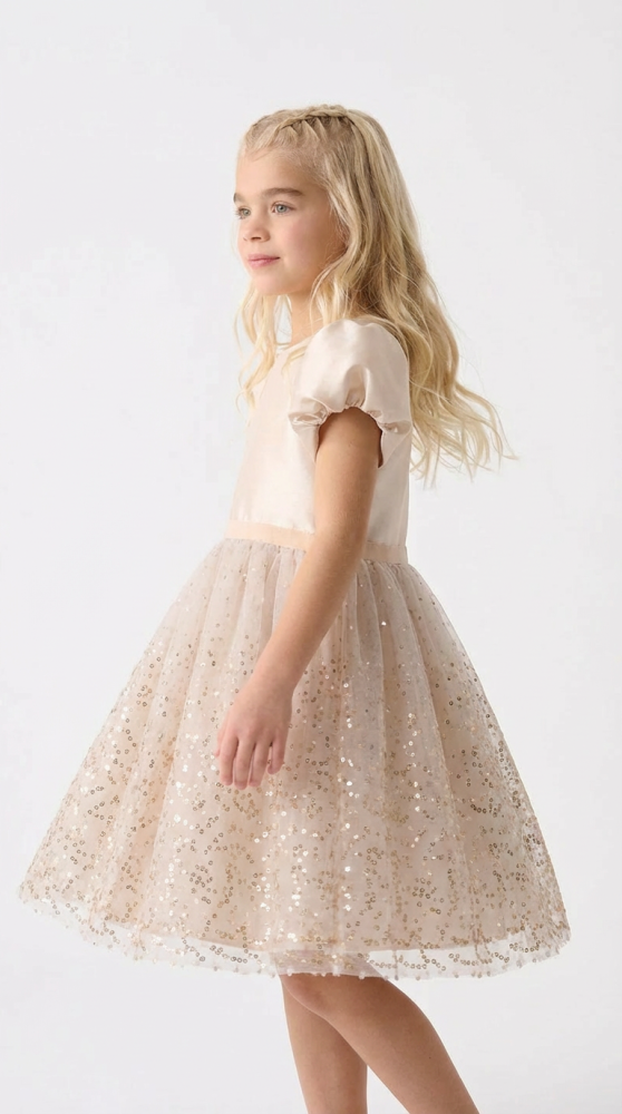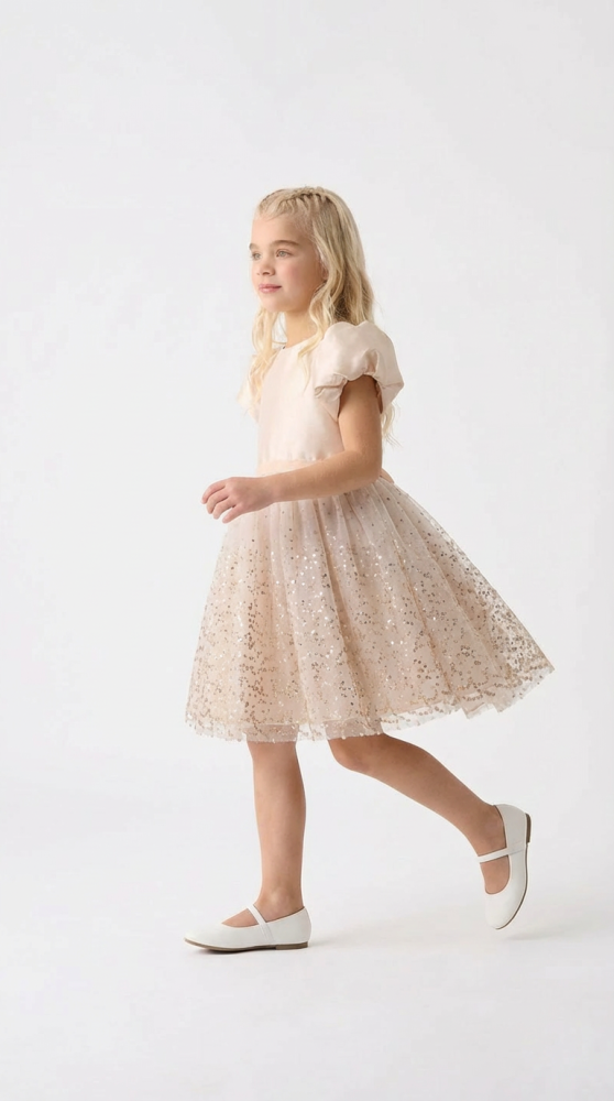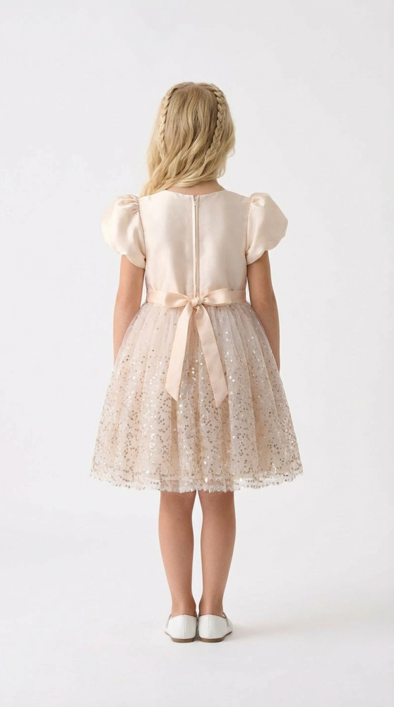 فستان أنيق مستوحى من نعومة الضوء ولمعانه، يجمع بين البساطة الراقية والتفاصيل الحالمة. تصميمه يعكس براءة الطفولة مع لمسة فخامة ناعمة، ليمنح طفلتك إطلالة راقية تشبه الأميرات دون مبالغة.